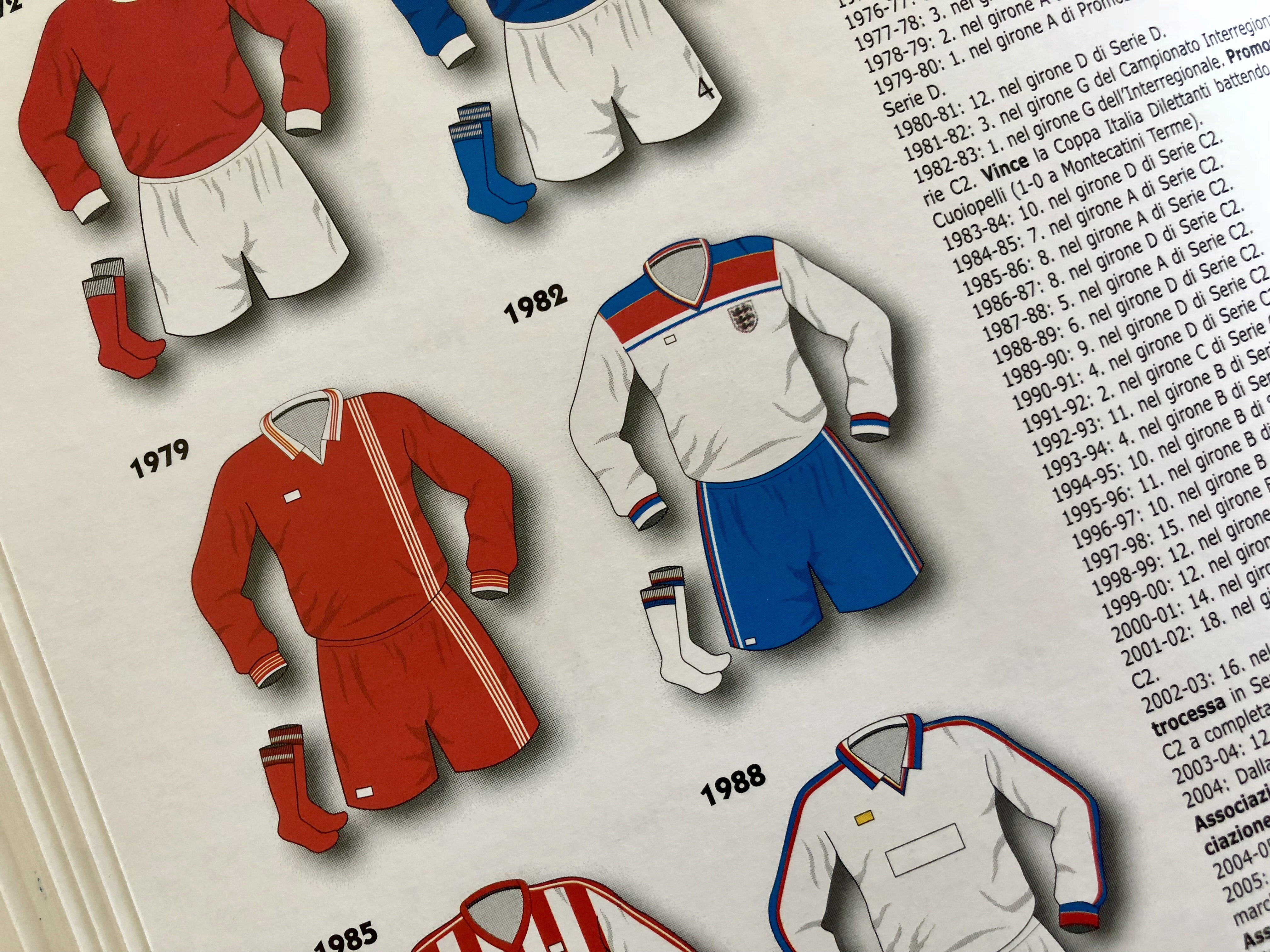 Since the late 1970s, Lodigiani had been using the British company Admiral as the technical supplier for their red and white home shirt. In 1982, they took the unprecedented step of adopting the England shirt. Not just the colours or Admiral template, but a lock-stock adoption of the entire shirt, complete with Three Lions on the chest. In fact, so taken were they with the design that they used the inverted red away version too.
