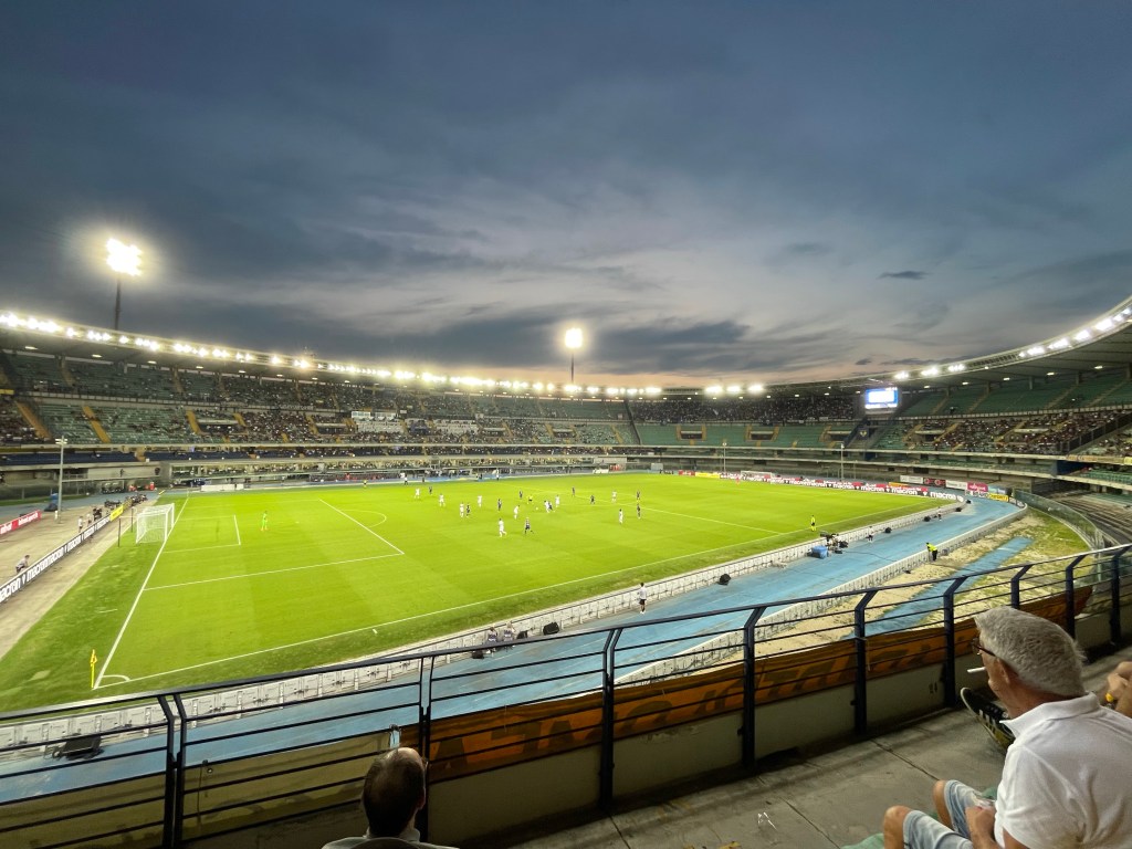On the one hand, Stadio Marc’Antonio Bentegodi stands as a monument to Italian football’s failure to keep pace with the rest of Europe. Squinting supporters are located beyond a rarely used athletics track. The venue lacks the corporate and commercial facilities that became integral to modern stadium design soon after Italia ‘90. It is in a dilapidated state with sections of the stadium out of bounds and generally not the sort of place you’d take someone you were trying to impress.